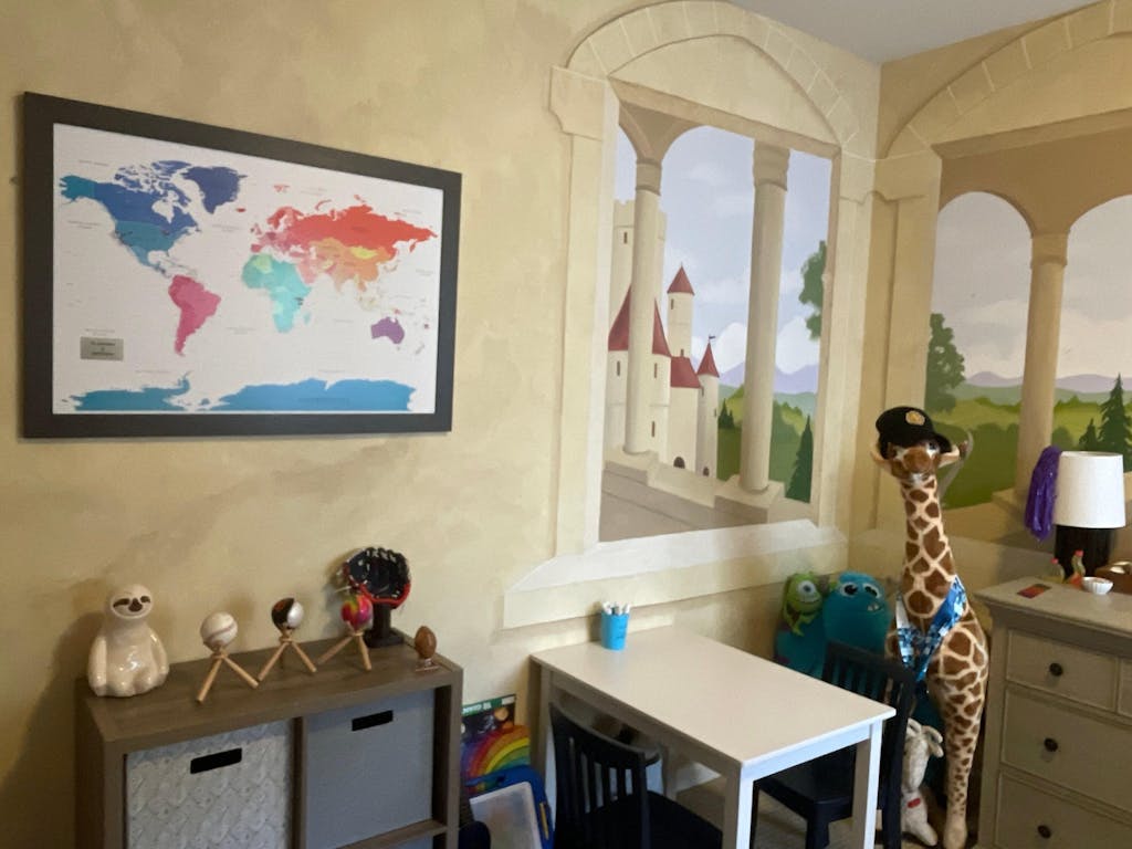 Go out and explore the world and then display your globetrotting adventures with this bright and cheery 3-Panel Colorful World Travel Map with pins. This joyful map boasts a lively color palette, made even more vibrant by the rich canvas texture. It is guaranteed to spruce up your décor and become a favorite conversation piece in no time at all! Think of it as interactive art you can use to pin and show off past travels and plan future adventures. The frameless 3-panel gallery wrapped map design is a fresh, modern style and the extra-large size provides more surface area to pin and bigger font sizes. The bright colors make this map a great choice for any kid's rooms as it inspires them to learn about travel and geography at an early age! Surprise that friend or loved one who is always traveling and planning that next big trip with this unique gift. Have your Colorful World pin map personalized to give it that extra special touch. Be warned though…displaying this 3-panel canvas travel map may cause a serious case of wanderlust!