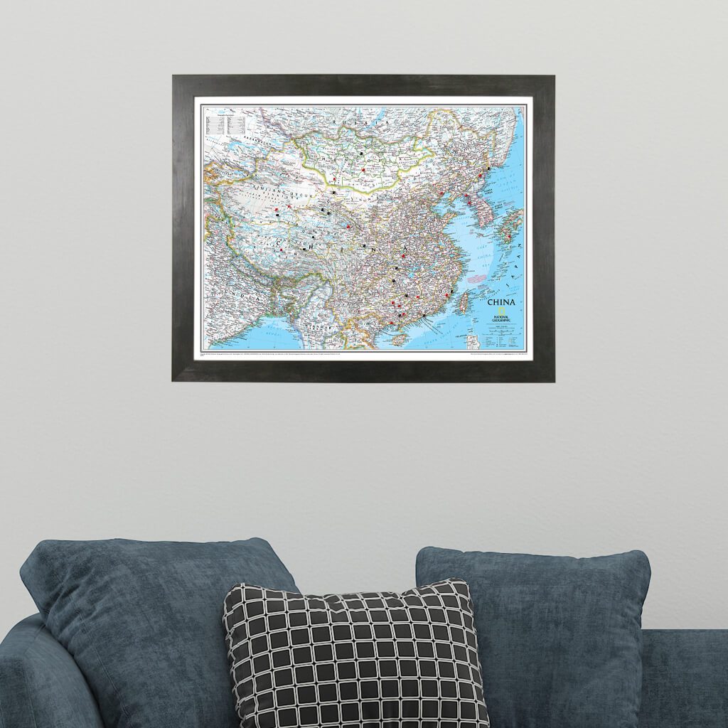 Rich in history and culture, China is a bucket list destination for many travelers. And now you can plan your trip with our new Classic China map! Made by the expert cartographers over at National Geographic, this map of China is highly detailed and shows many other countries as well, including: Mongolia, North Korea, South Korea, Taiwan, Nepal, Bangladesh, Bhutan, and portions of Japan, the Philippines, Vietnam, Laos, Thailand, Myanmar (Burma), India, Russia, and a few Middle Eastern countries. Also depicted on this map are major transportation infrastructures such as highways, airports, and railroads. The bright blue coloring of the map will help accentuate your great taste in décor. Know someone who has walked along the Great Wall? This China push pin map will make a great gift for that adventurous person in your life or a great learning tool for children. Order this map and start checking off those destinations on your bucket list today!